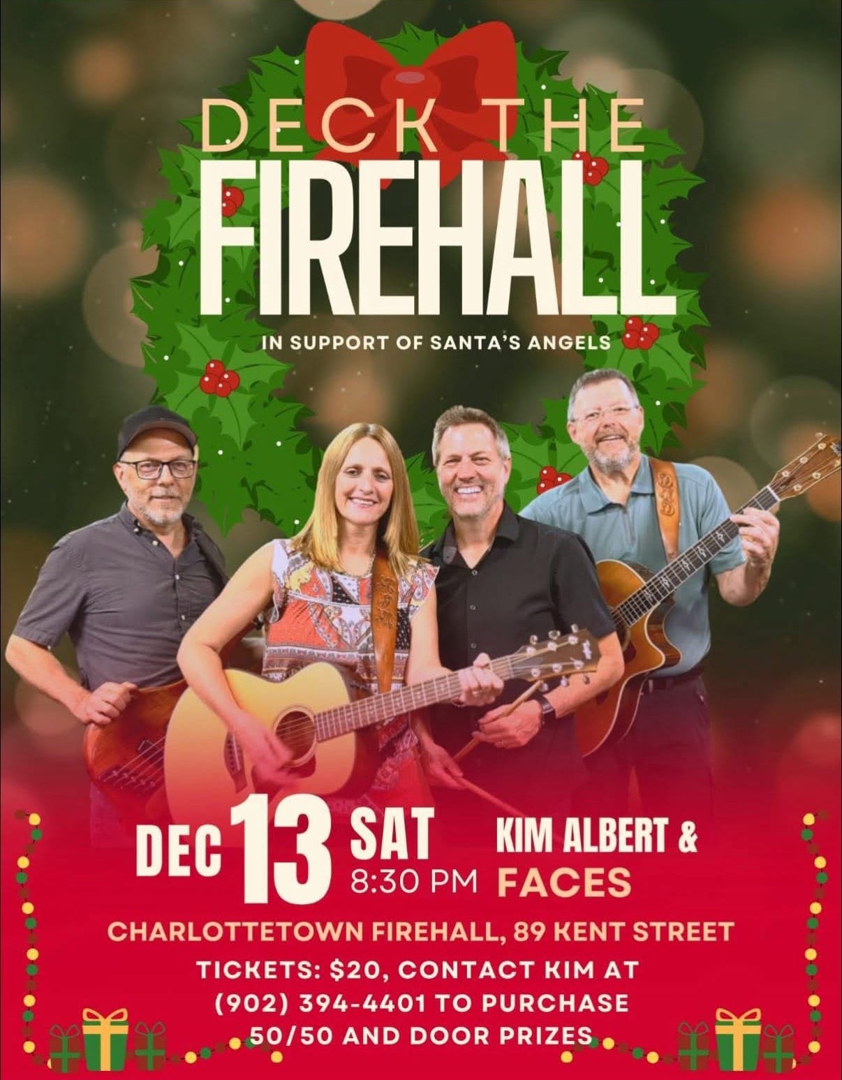 Christmas Dancers come one come all! Join Kim Albert and Faces at the Charlottetown Firehall on December 13th, starting at 8:30pm. A portion of proceeds will go to Santa’s Angels. 50/50 and Door Prizes.
